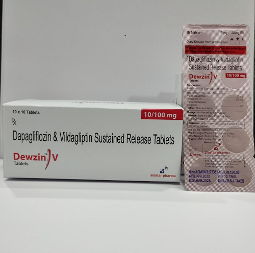 Dapagliflozin and Vildagliptin Sustained-Release Tablets come under the branding Dewzin-V medication known as anti-diabetic. It is a combination of two drugs Dapagliflozan+ Vidagliptin which is used for the treatment of type 2 diabetes. The medication contains Dapagliflozin a protein found in a kidney called sodium-glucose cotransporters-2 (SGLT-2 inhibitor) that works by inhibiting the reabsorption of glucose in the human body, resulting in rising in glucose excretion through urine.