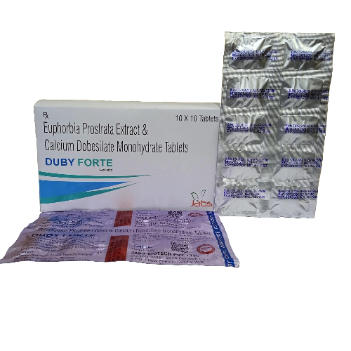 Euphorbia Prostrata Extract and Calcium Dobesilate Monohydrate Tablets belong to the “DUBY FORTE” brand and are used for the treatment of piles. This medication is effective in controlling bleeding from engorged anal veins by improving the free flow of blood through the veins. The tablets of Euphorbia Prostrata Extract and Calcium Dobesilate Monohydrate promotes healing as well as decreases inflammation by reducing the viscosity of the blood. It also reduces leakage from the blood vessels. Consume it as prescribed by a medical expert and avoid taking it more than the recommended dosage as consuming more can affect human health adversely.