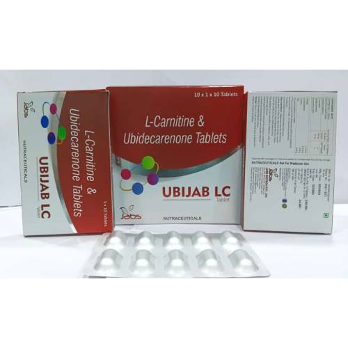 L-Carnitine and Ubidecarenone Tablets: This medication comes under the branding of UBIJAB LC, which helps to treat nutrition deficiency, nutritional deficiencies, muscle movement, heart health, brain function, and different body processes. This medication belongs to the class of drugs known as ‘nutritional supplements’. Nutrition deficiency is a health problem due to a lack of required nutrition in the daily diet. This tablet is also used for the treatment of coenzyme Q10 deficiency and carnitine deficiency.